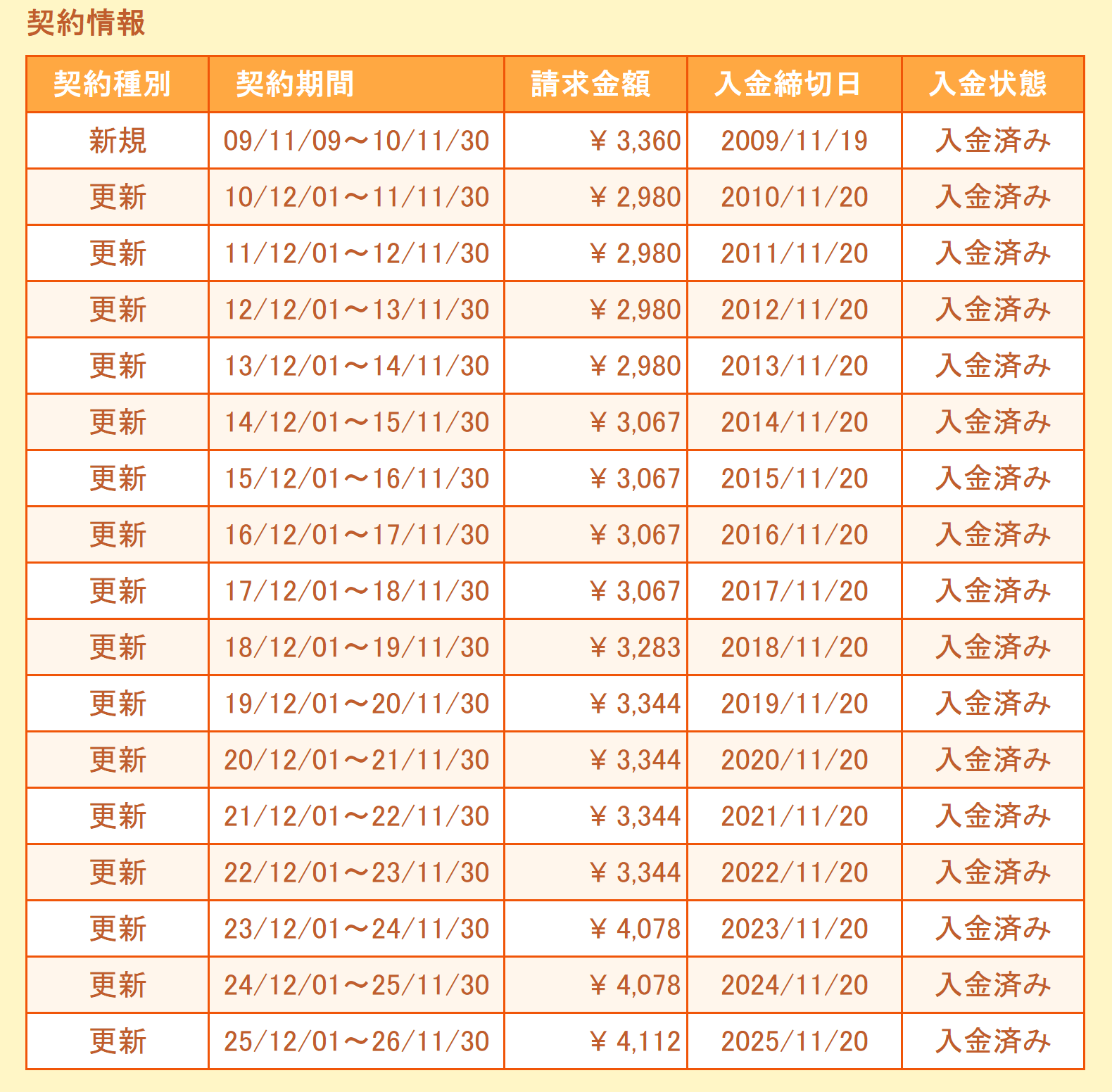 数えたら17年も契約が続いていました。